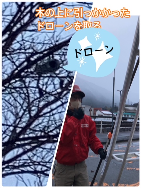 木の上に引っ掛かってしましてドローンを取ってほしいとご依頼があり